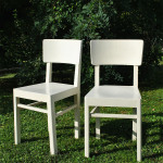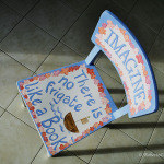 This is my latest work completed right before Christmas. The project consisted in developing a decoration idea for two white wooden chairs for the Aviano Air Force Base Elementary School. Once I sandpapered and re-coated both chairs, I proceeded with the more artistic side of the job by using acrylic paint.